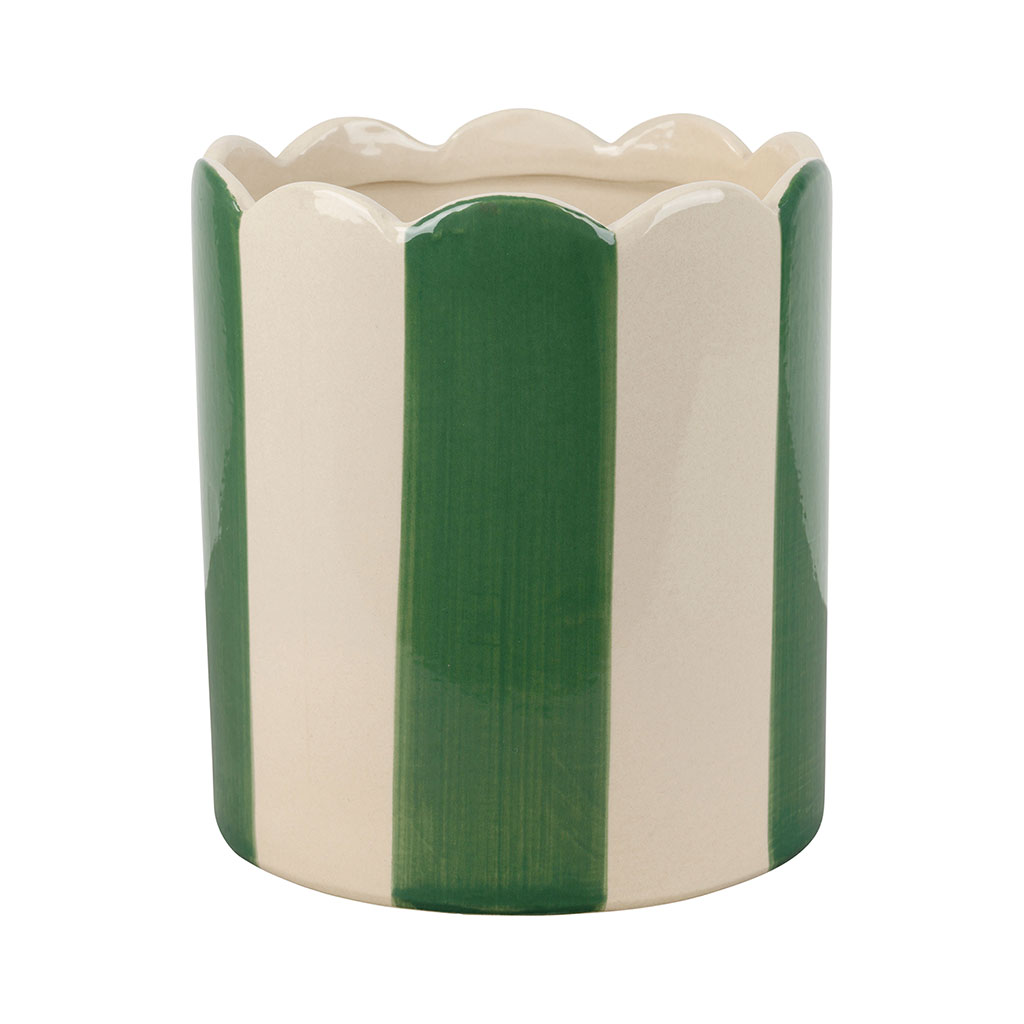 05 56 69 68 67-contact@fabriquedestyles.frCache-pot en grès rayé vert et blanc d18cm - Artist