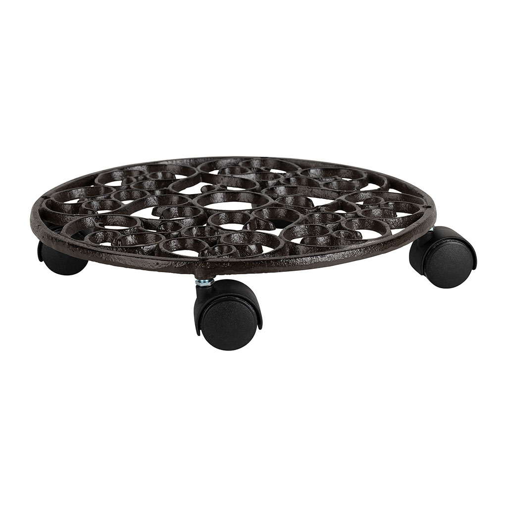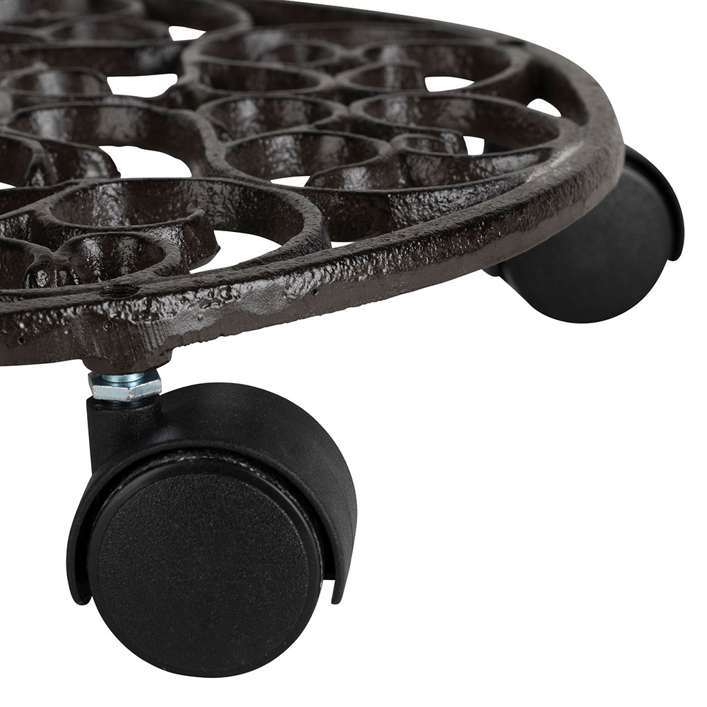 05 56 69 68 67-contact@fabriquedestyles.frPorte plante 4 roues en fonte brun d31.5cm - Rhodonea