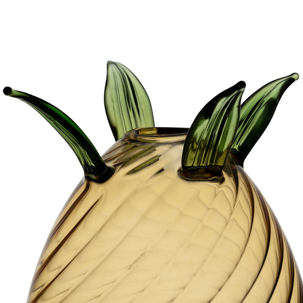 05 56 69 68 67-contact@fabriquedestyles.frVase ananas en verre fumé jaune h22cm - Lumi