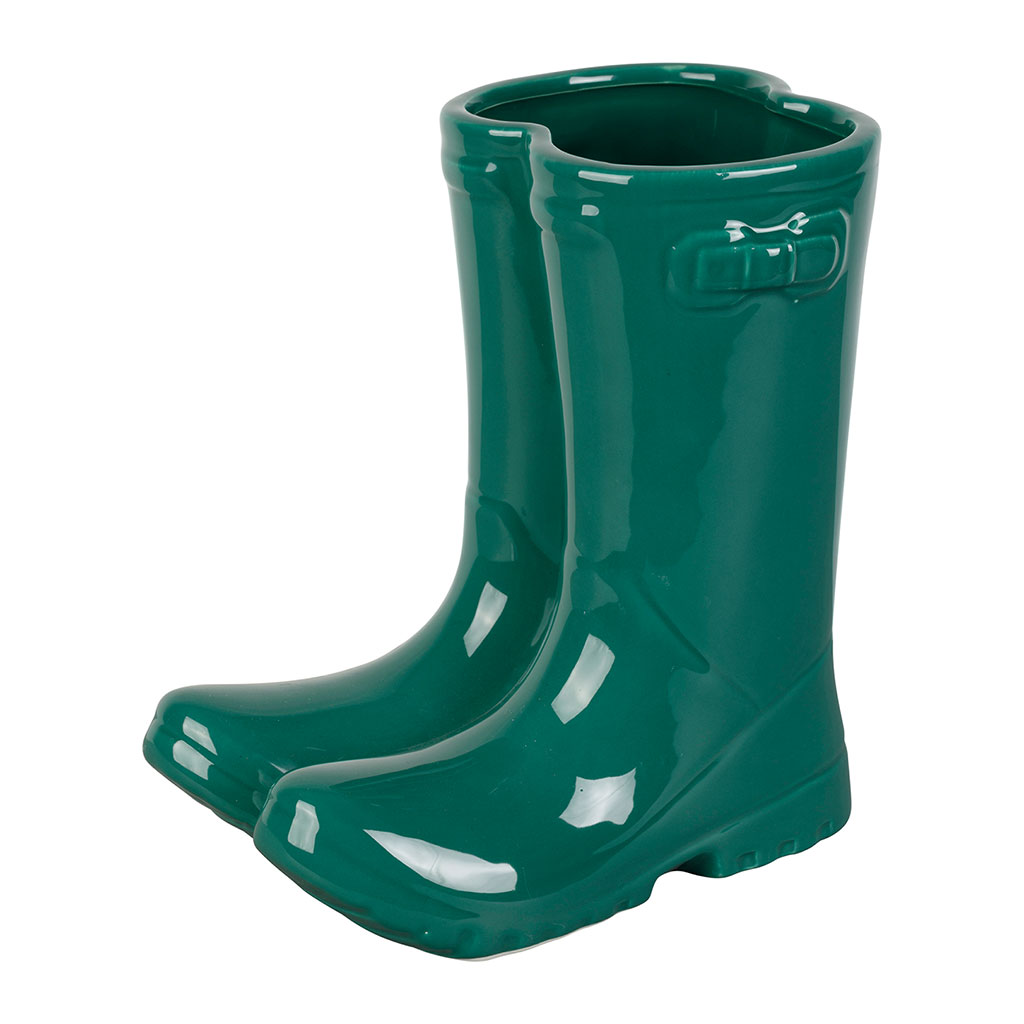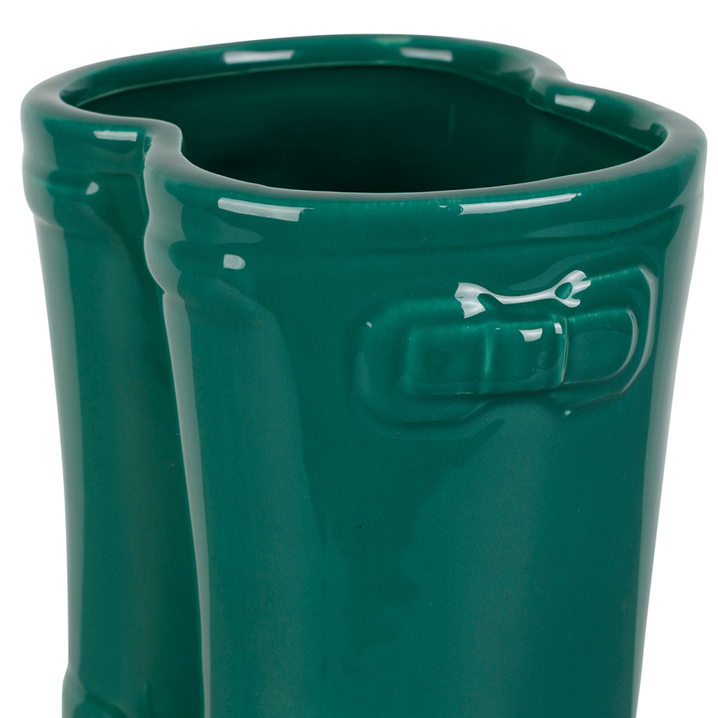 Ajoutez une touche d’originalité pleine de fantaisie avec ce vase en forme de bottes en dolomite émaillée couleur émeraude.