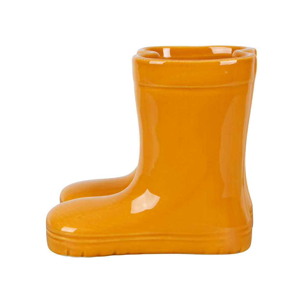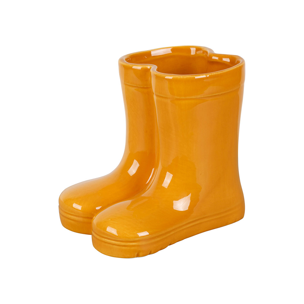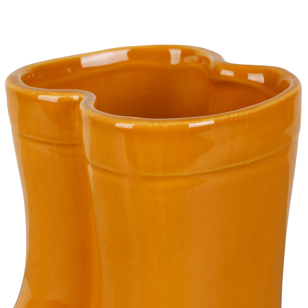 Ajoutez une touche ludique à votre intérieur avec ce vase unique en forme de bottes, réalisé en dolomite dans une teinte moutarde éclatante.