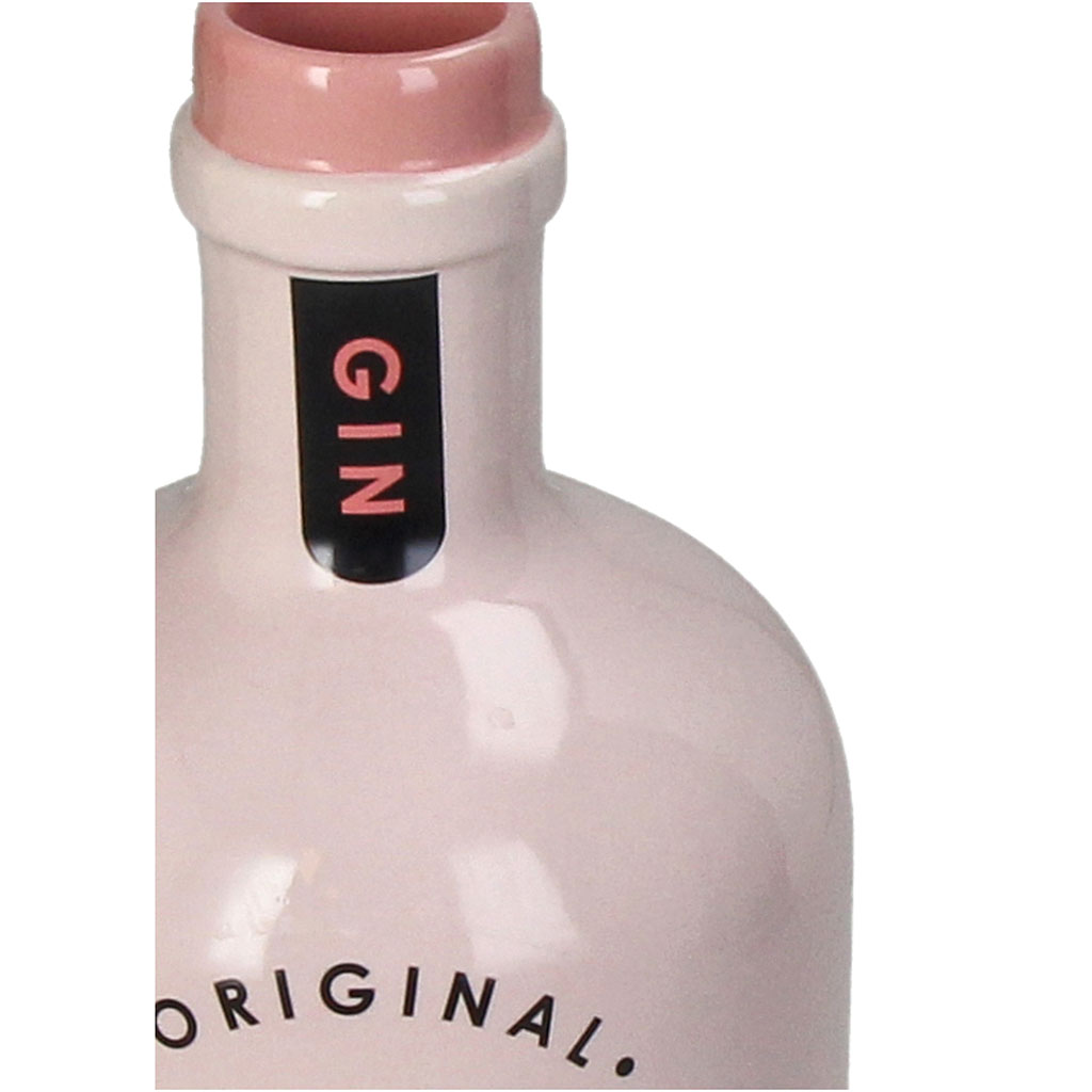 Ce vase en grès rose prend la forme d'une bouteille de gin rétro pour un effet totalement décalé !