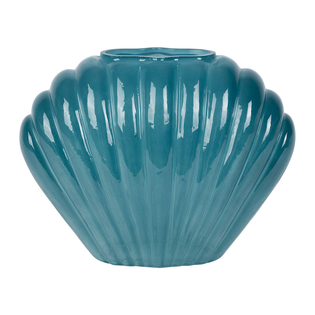 05 56 69 68 67-contact@fabriquedestyles.frVase coquillage en verre bleu h22cm - Leucie