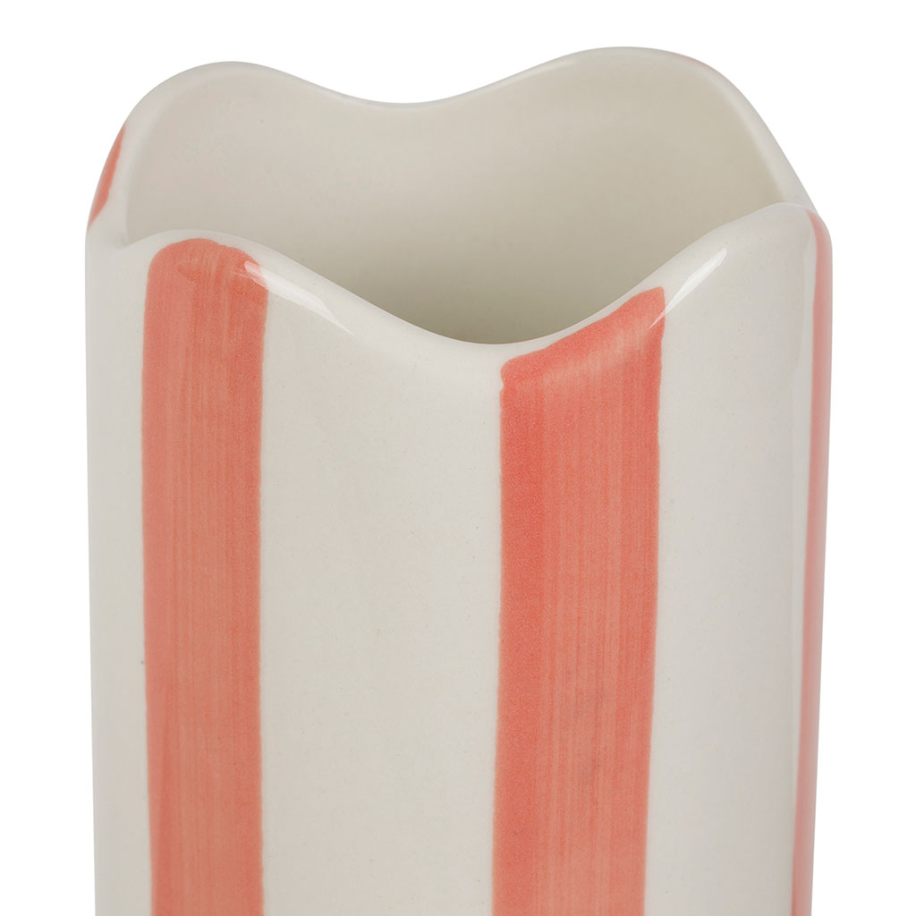 Découvrez un ajout charmant pour votre intérieur avec ce vase cylindrique en grès aux rayures roses et blanches.