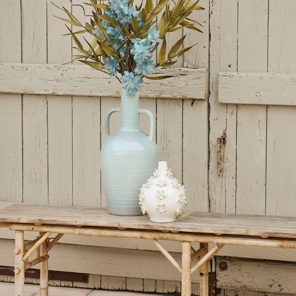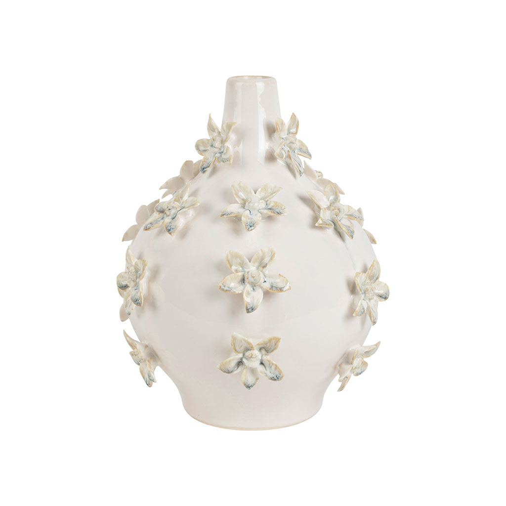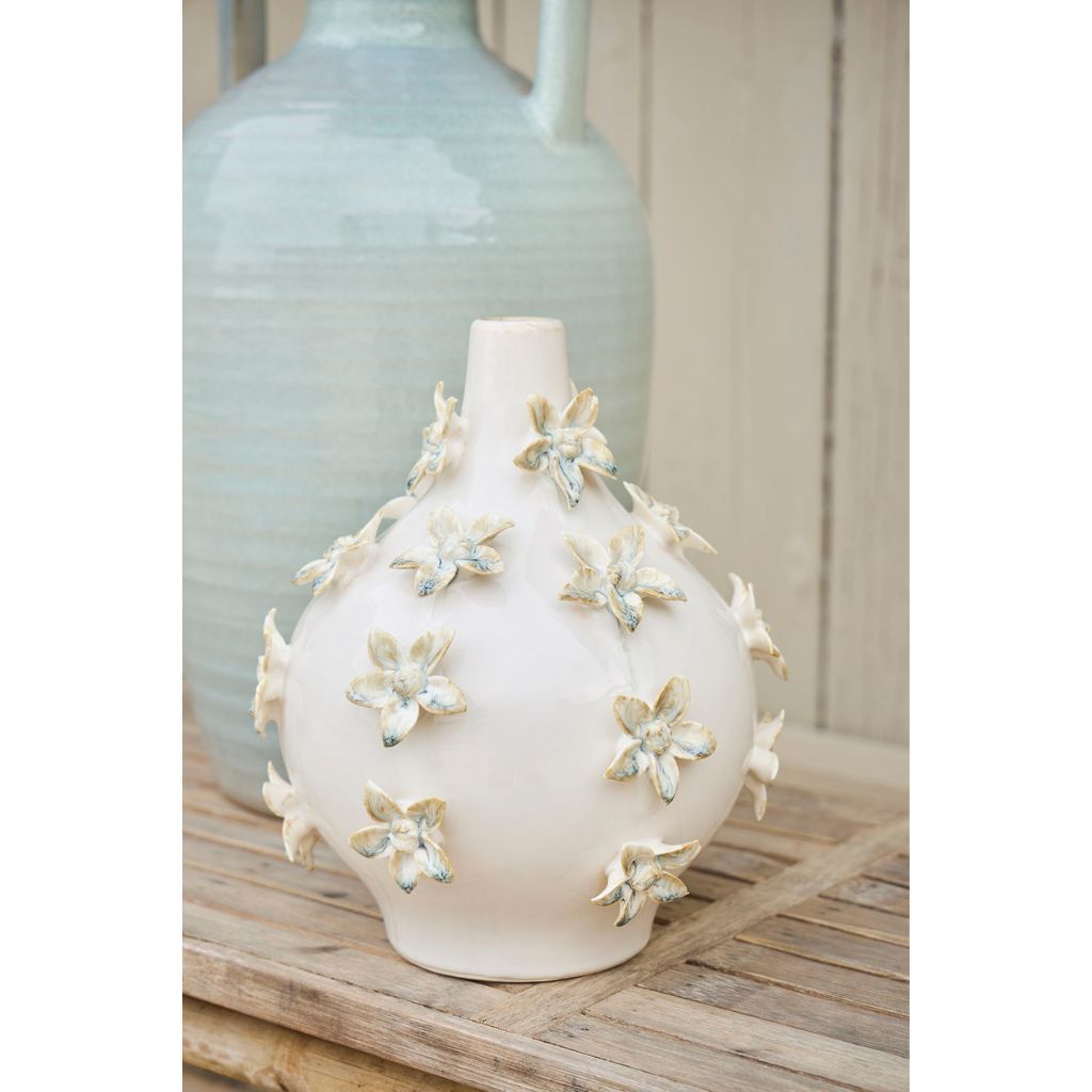 05 56 69 68 67-contact@fabriquedestyles.frVase dame jeanne en grès fleurs blanc cassé h25cm - Delicio