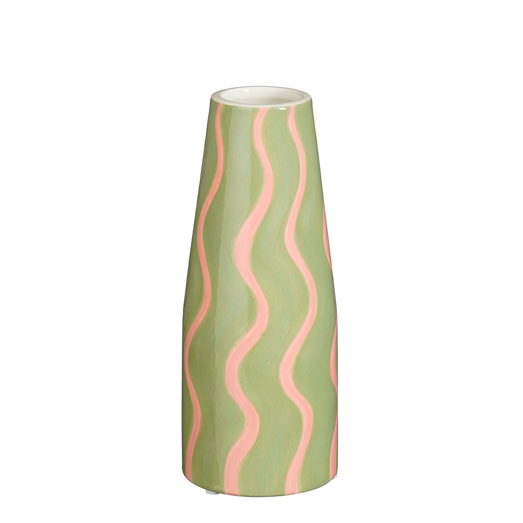 Ajoutez une touche de fraîcheur et de couleur à votre intérieur avec ce vase en dolomite rayé vert et rose.