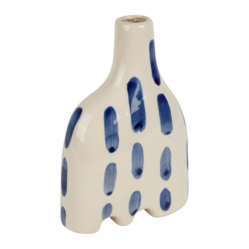 05 56 69 68 67-contact@fabriquedestyles.frVase en grès écru et bleu h19cm - Lumi