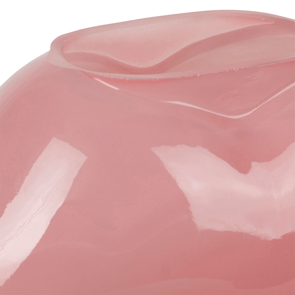 Ce vase se distingue par son verre teinté rose, offrant une transparence délicate qui joue élégamment avec la lumière.