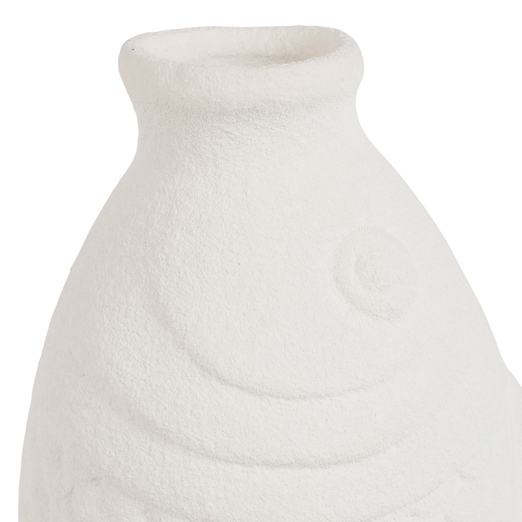 Ce vase en forme de poisson, entièrement réalisé en grès blanc, attire l’œil par son design sculptural et sa finition texturée.
