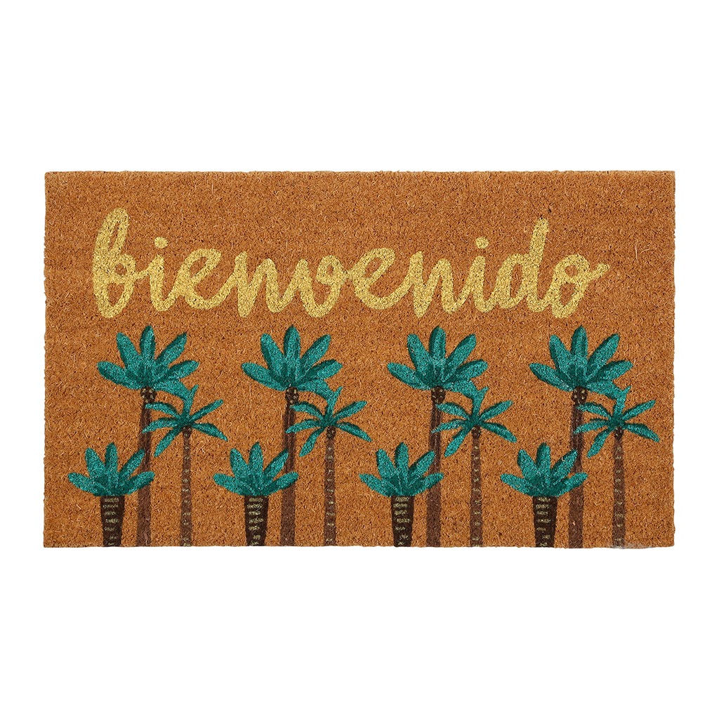 Le paillasson 'bienvenido' en PVC et coco vert 73x43cm - Patchuca est un accessoire indispensable pour accueillir chaleureusement vos invités.