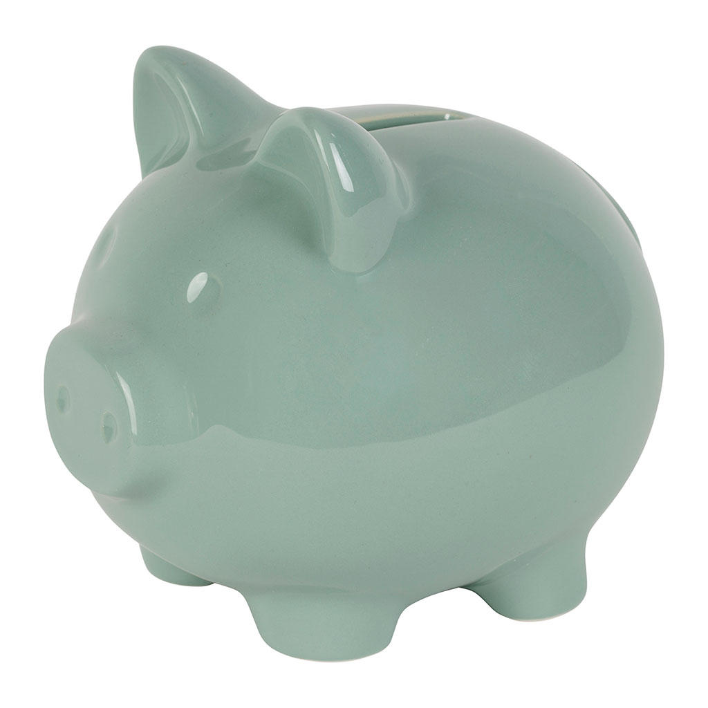 05 56 69 68 67-contact@fabriquedestyles.frTirelire cochon en grès sauge h11cm