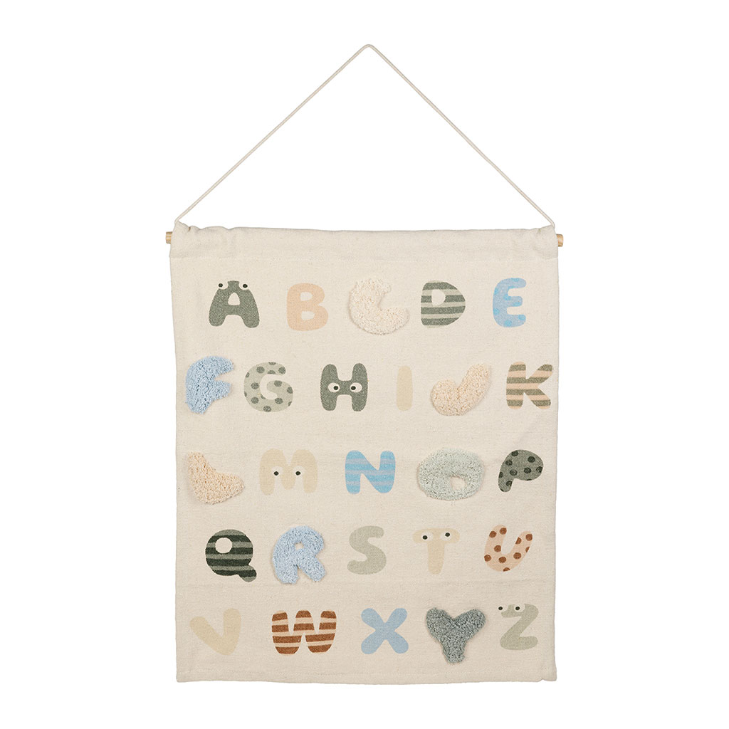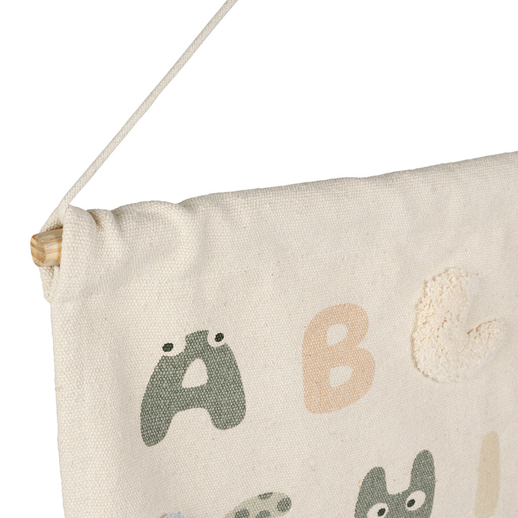 Cette toile présente un alphabet en relief qui attire autant l'œil que la curiosité des jeunes explorateurs.