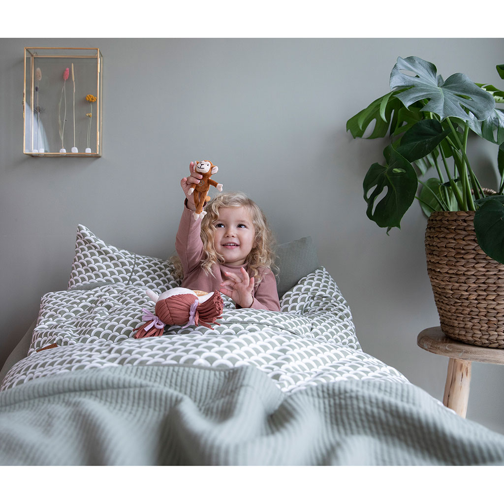Parfaite pour la maison, la poussette ou les sorties, la poupée peluche Sofia et son petit singe sauront apporter joie et confort à votre enfant.