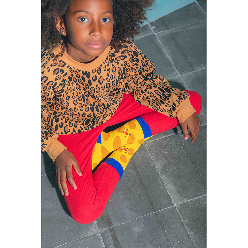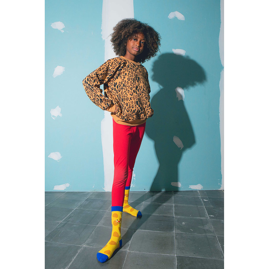 Ces chaussettes jaunes à motifs tachetés et museau souriant feront ronronner de bonheur les plus jeunes.