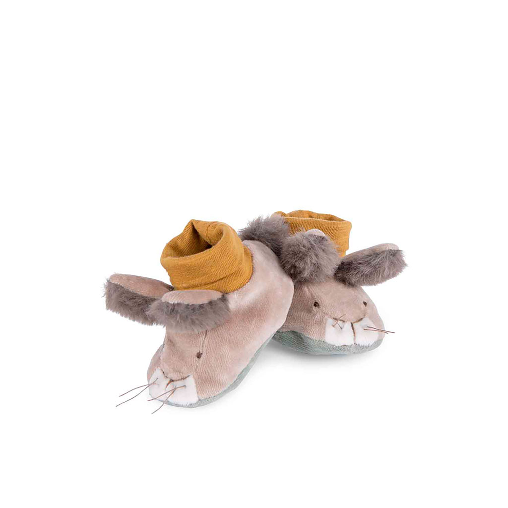 Craquez pour ces adorables chaussons lapin en coton marron, tout droit sortis de la collection Trois petits lapins.