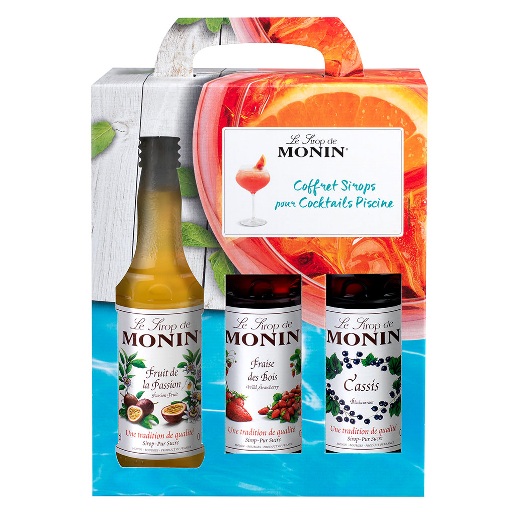 Ce coffret contient 3 bouteilles de 25cl : Cassis, Fruit de la Passion, Fraise des Bois.