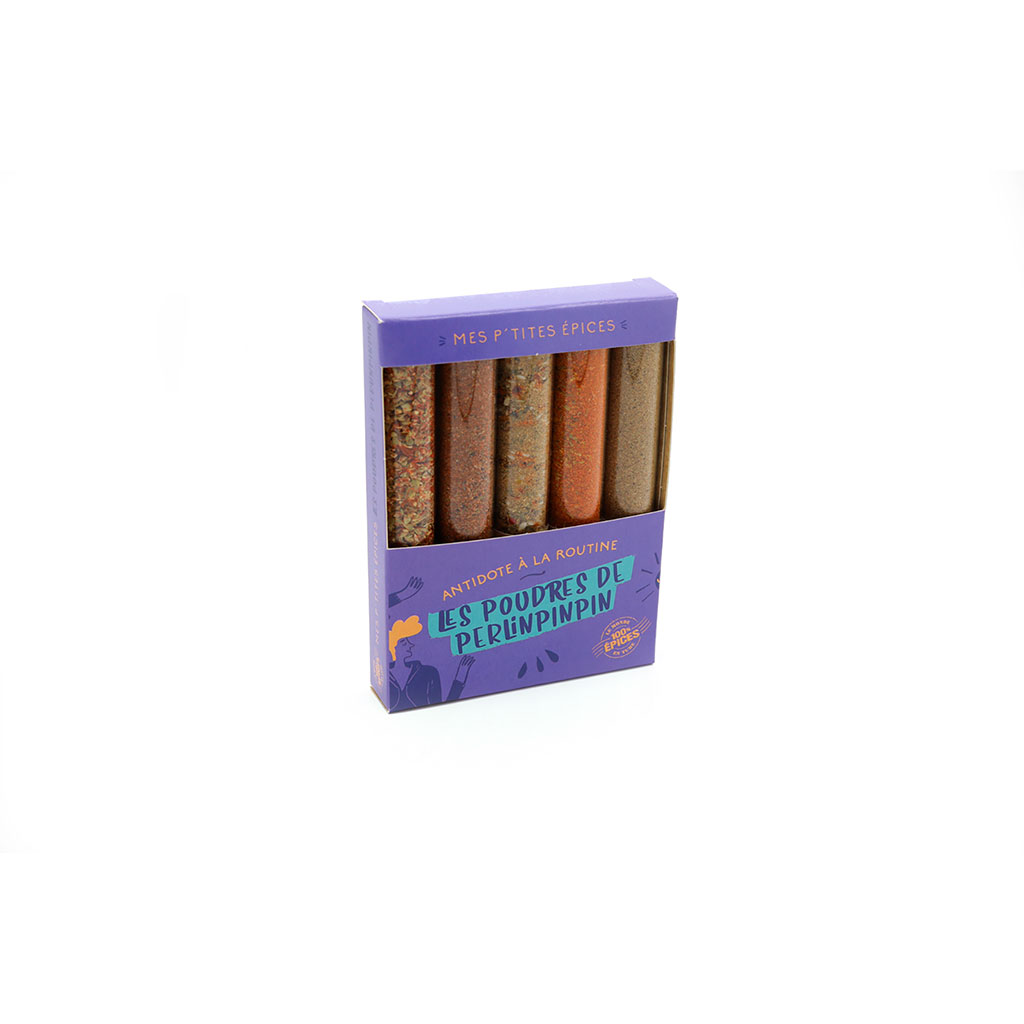 Le coffret Les Poudres de Perlinpinpin se présente comme une collection ludique et aromatique de six mélanges d'épices destinés à transformer vos recettes quotidiennes.
