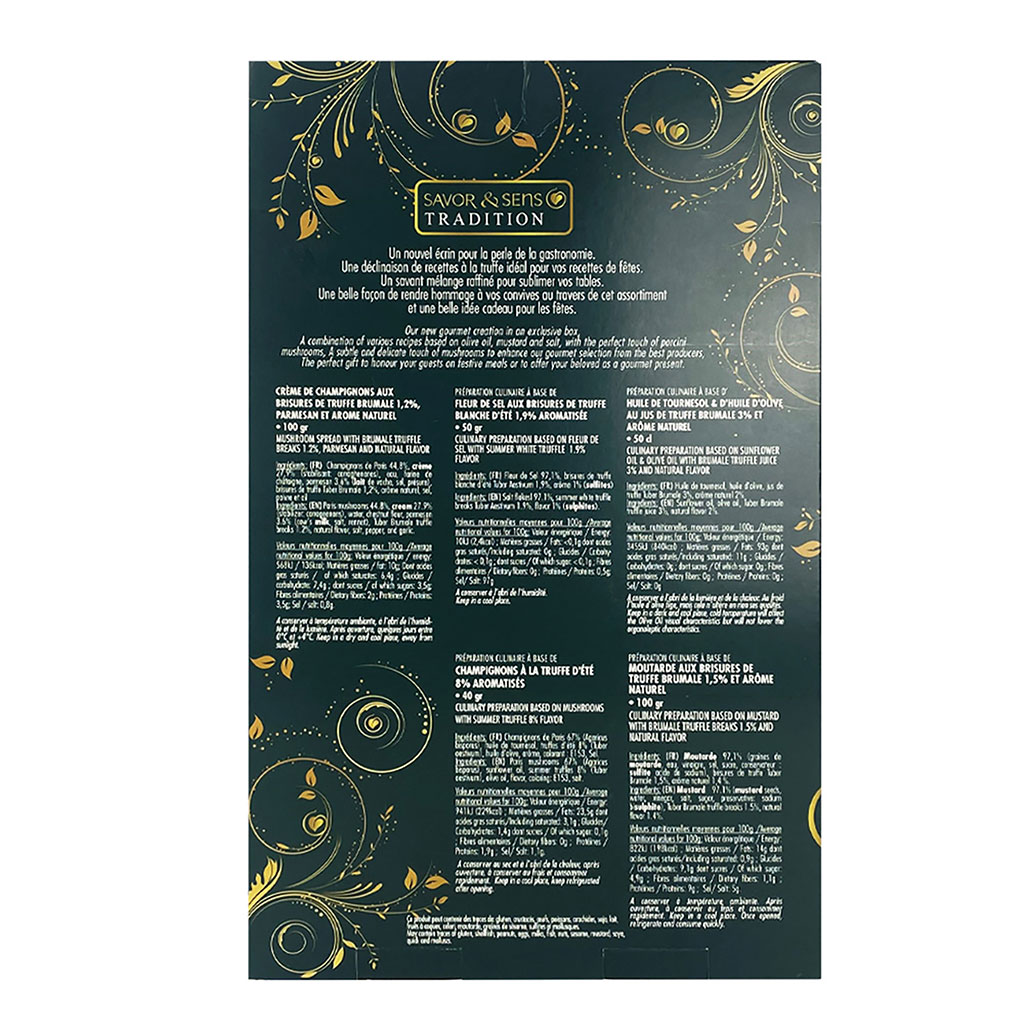 Imaginé pour les amateurs de bonne chère, ce coffret vous permet d’explorer la richesse des truffes sous plusieurs déclinaisons, à intégrer dans vos mets préférés.