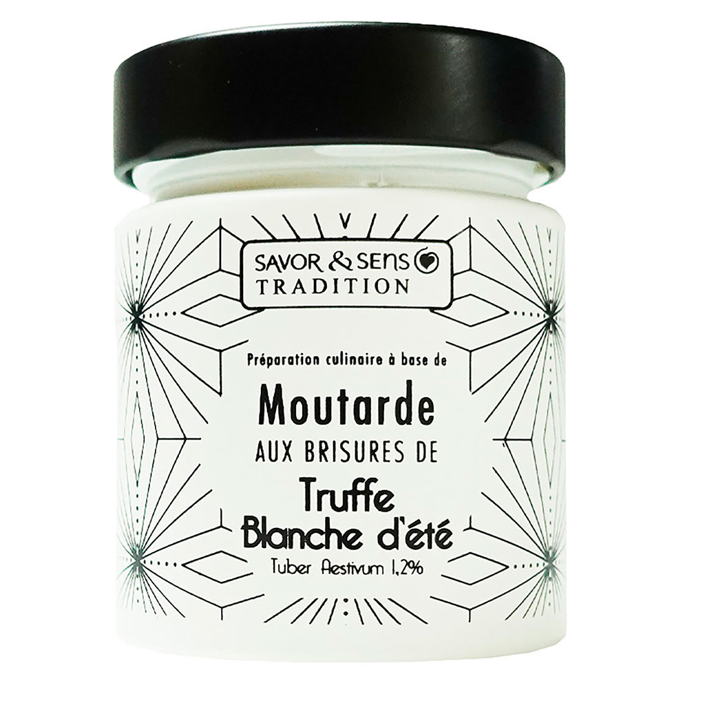 05 56 69 68 67-contact@fabriquedestyles.frMoutarde aux brisures de truffe blanche (pot blanc)