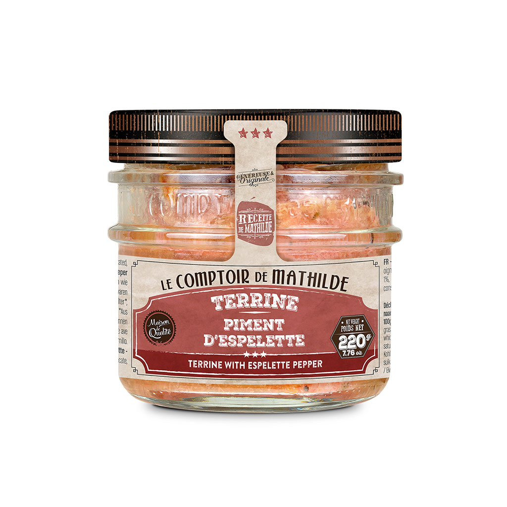 Cette spécialité de l’épicerie fine associe habilement le goût subtil du piment d'Espelette aux saveurs authentiques d'une terrine traditionnelle.
