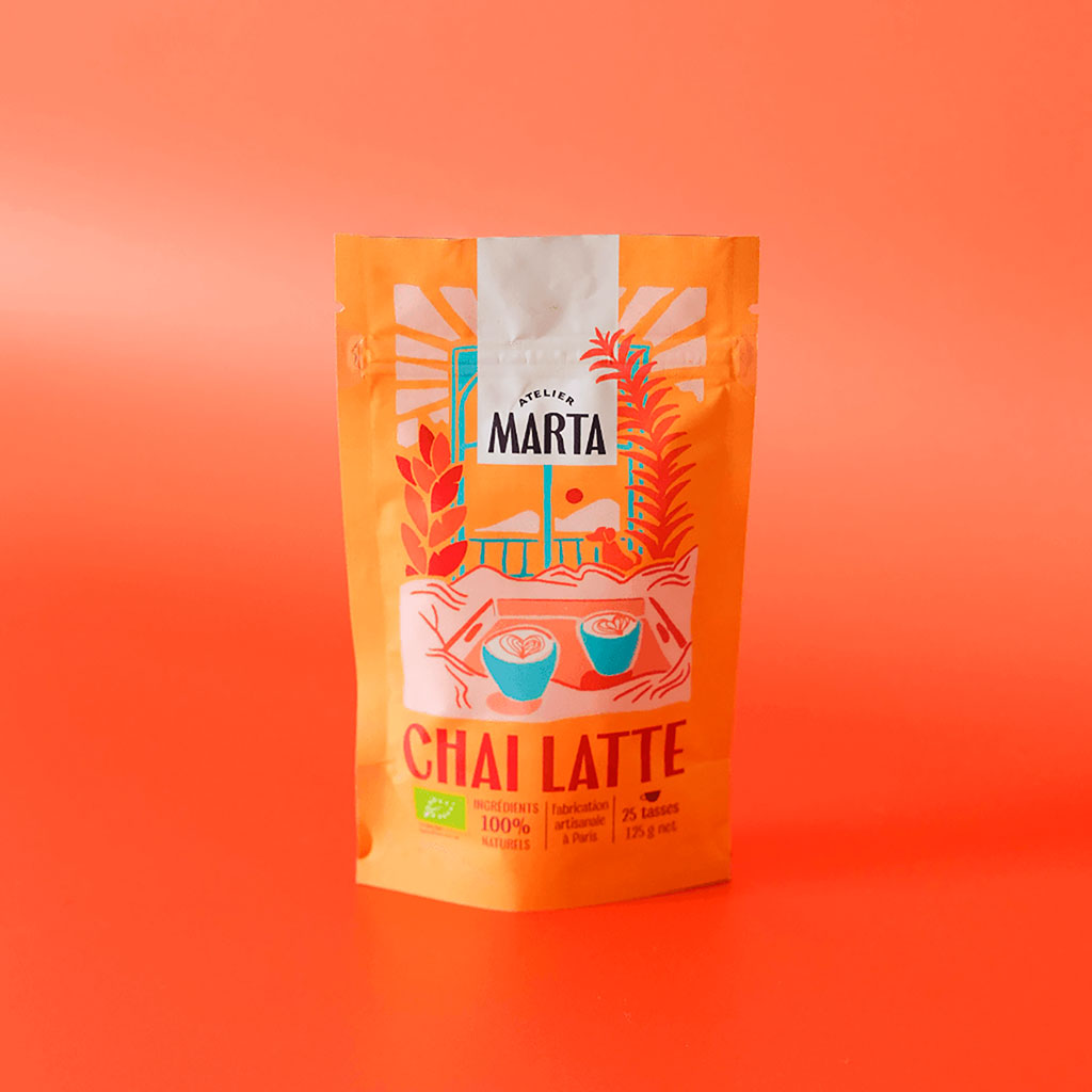 Ajoutez une cuillère à café (5 g) de votre chai latte Atelier Marta dans une tasse et ajoutez un peu de lait chaud de votre choix (vache, avoine, riz, coco etc).
