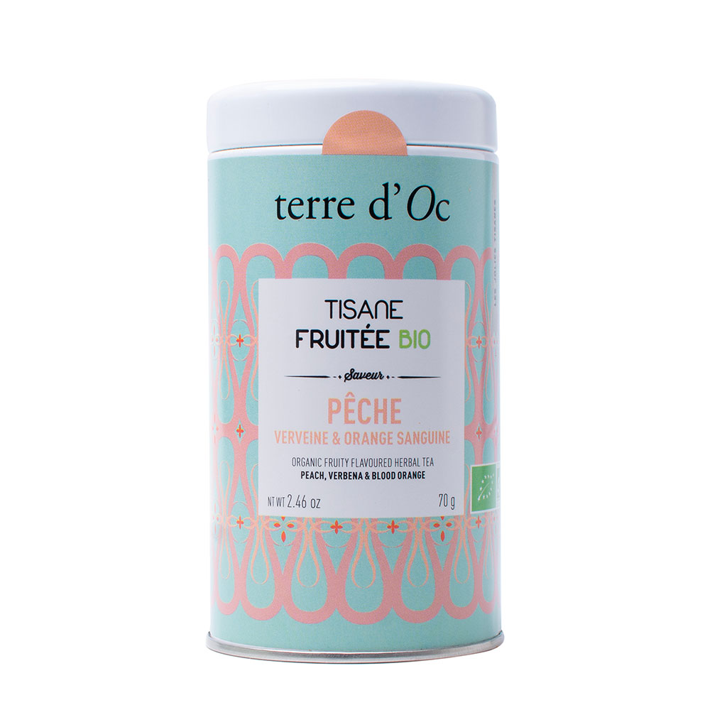 05 56 69 68 67-contact@fabriquedestyles.frTisane peche verveine orange sanguine- pot en métal - 70g ab