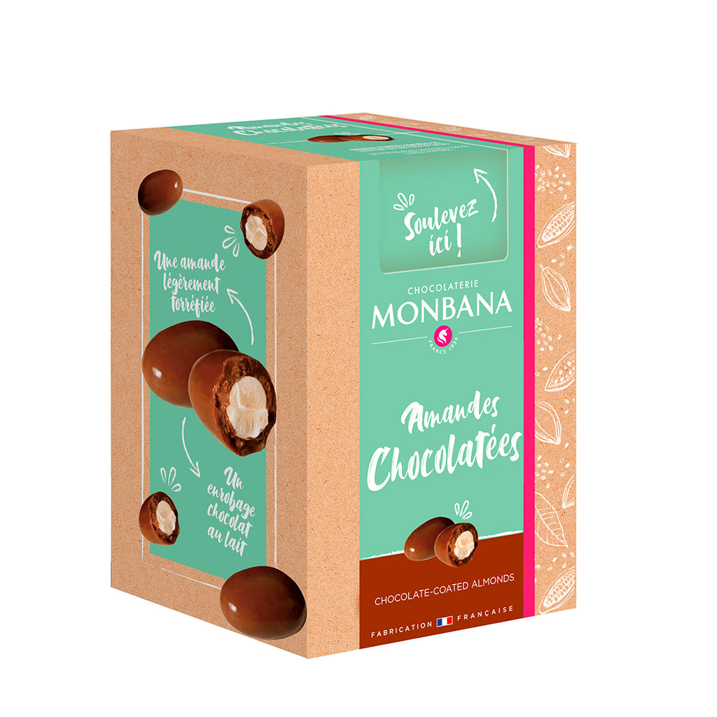 Cette délicieuse pâtisserie est composée d'une fine couche de chocolat croustillant enveloppant des amandes croquantes et savoureuses.