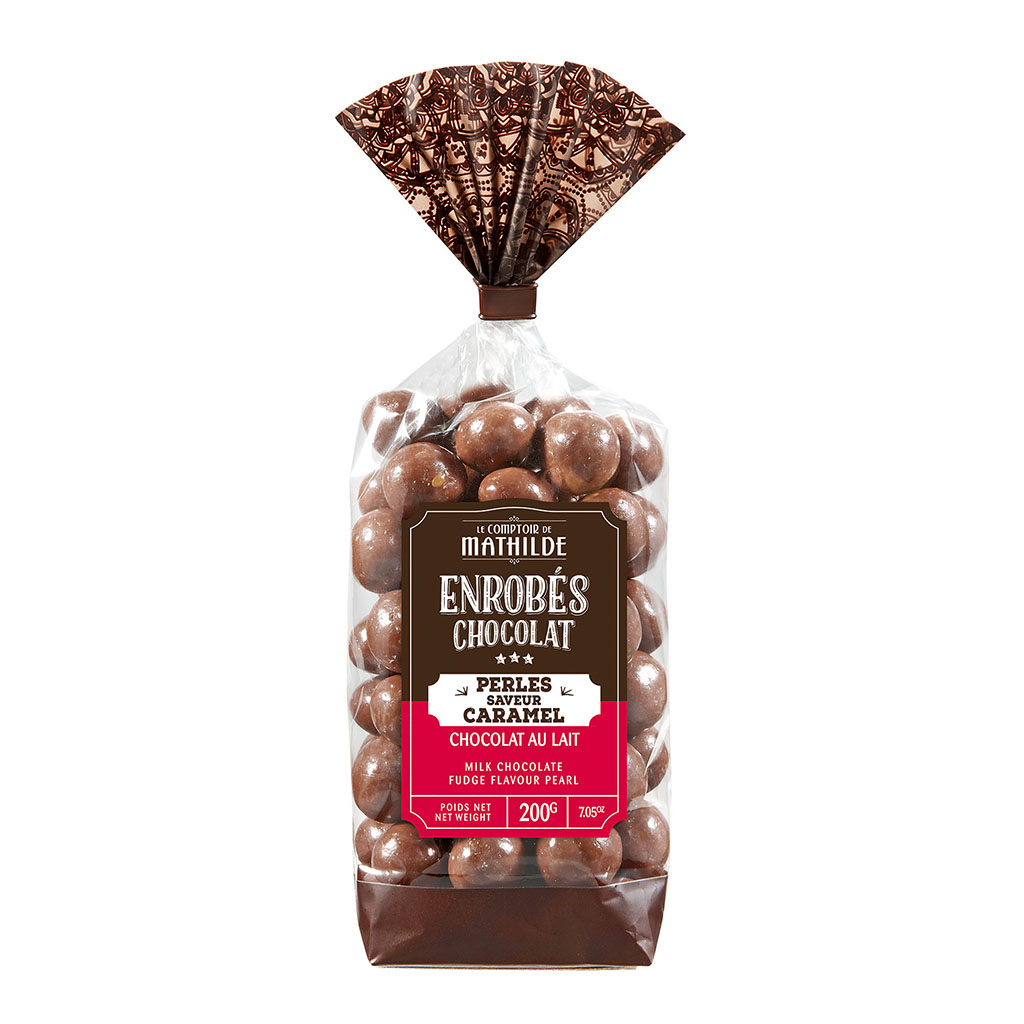 Plongez dans la gourmandise avec nos perles de chocolat au lait et caramel de 170g, une délicieuse tentation en chaque petite sphère.