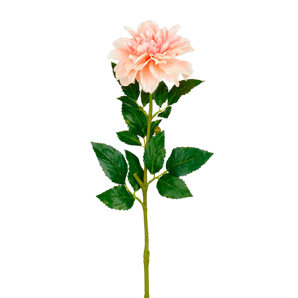 Cette fleur artificielle dahlia se distingue par sa corolle complexe aux multiples rangées de pétales en tissu saumon aux nuances délicates et chaleureuses.