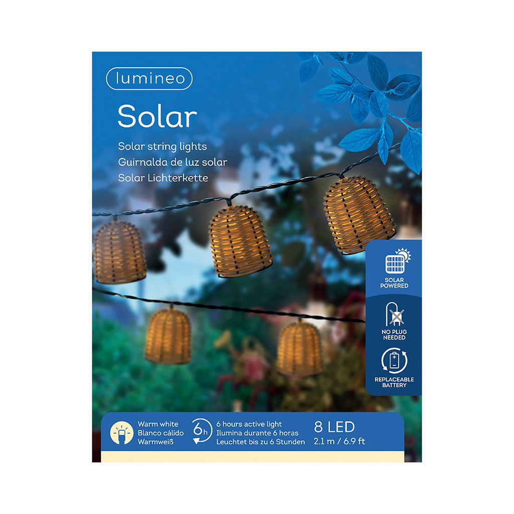 05 56 69 68 67-contact@fabriquedestyles.frGuirlande solaire 8 LED en résine tréssée blanc chaud L210cm