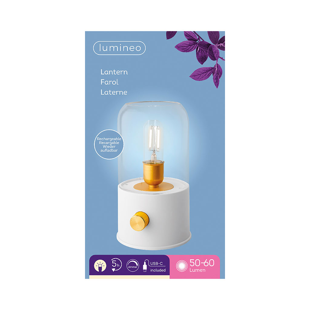 05 56 69 68 67-contact@fabriquedestyles.frLampe tempête LED rechargeable blanc h20cm