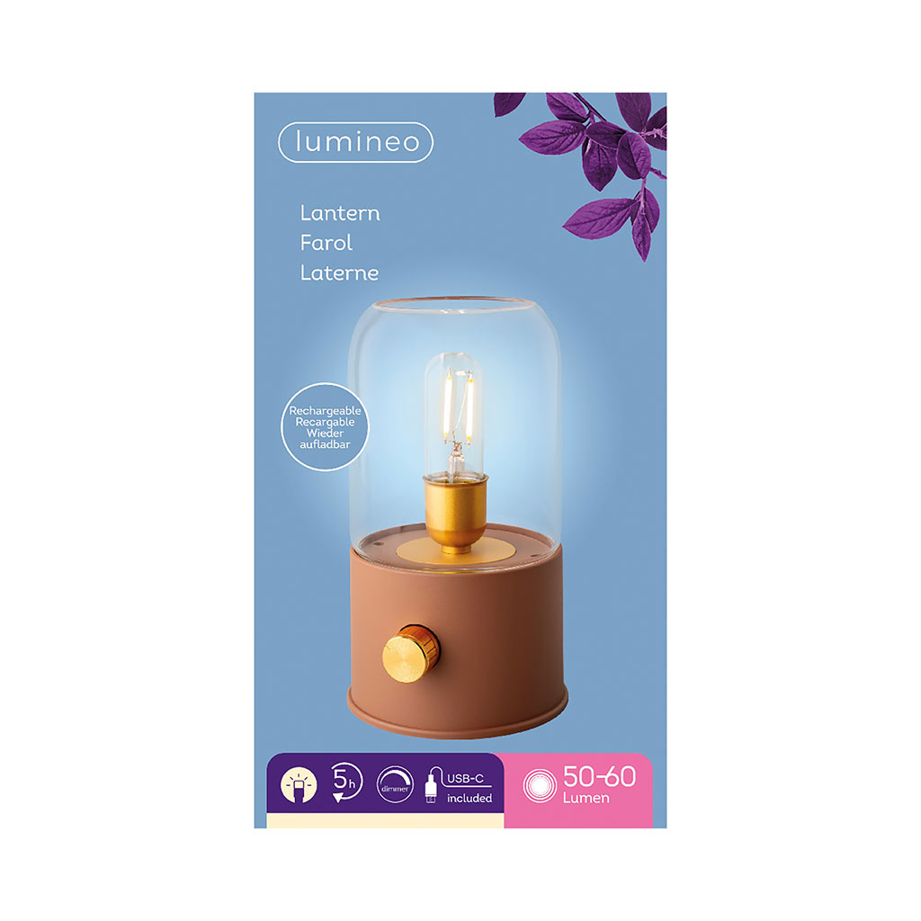 05 56 69 68 67-contact@fabriquedestyles.frLampe tempête LED rechargeable terracotta h20cm