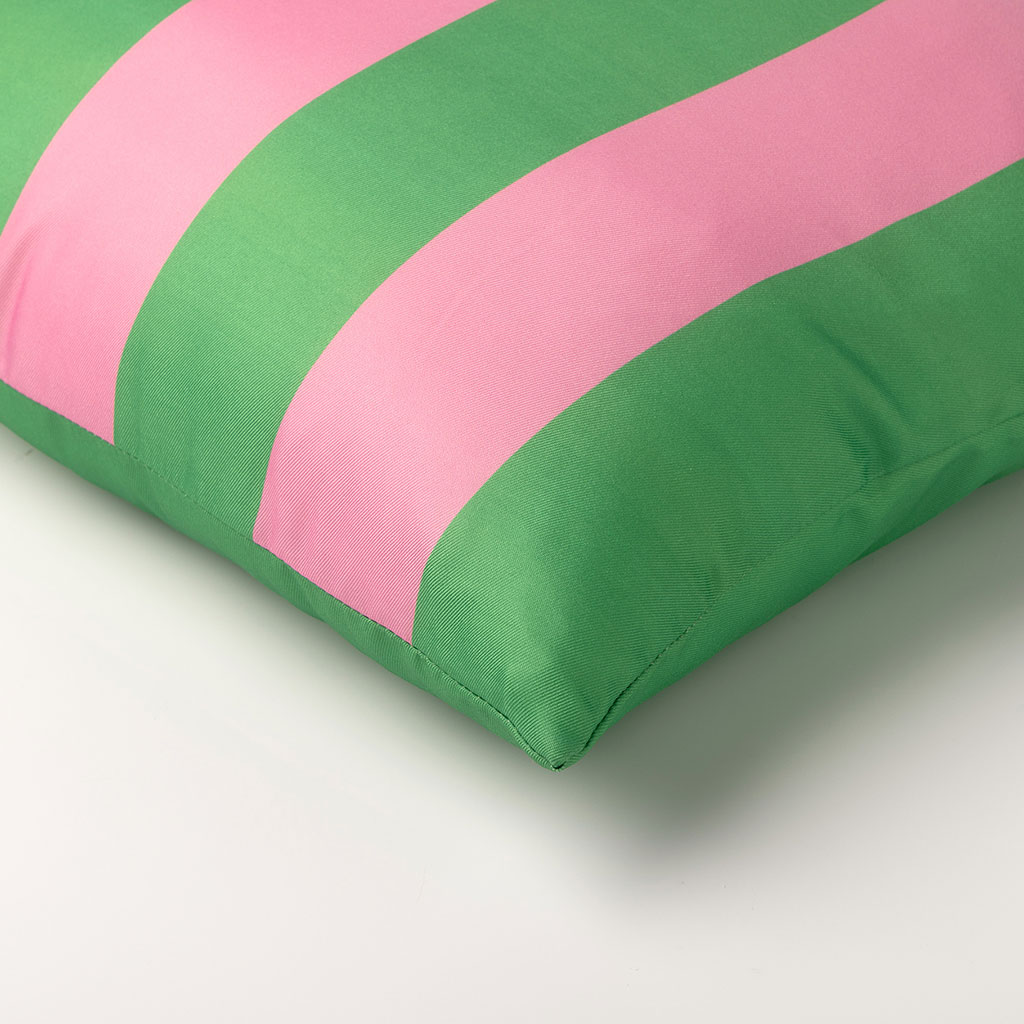 05 56 69 68 67-contact@fabriquedestyles.frCoussin d'extérieur en tissu rayé vert et rose 45x45cm - Apollo