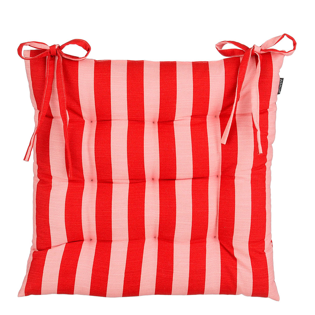 05 56 69 68 67-contact@fabriquedestyles.frGalette de chaise en coton rayée rouge et rose 46x46cm - Kim