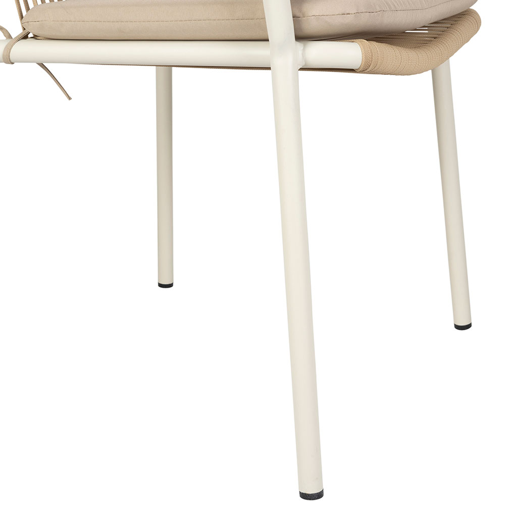 05 56 69 68 67-contact@fabriquedestyles.frFauteuil d'extérieur avec coussin en tissu beige et blanc - Ajay