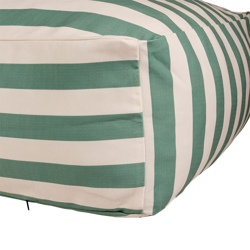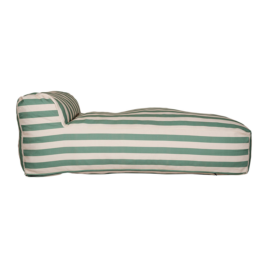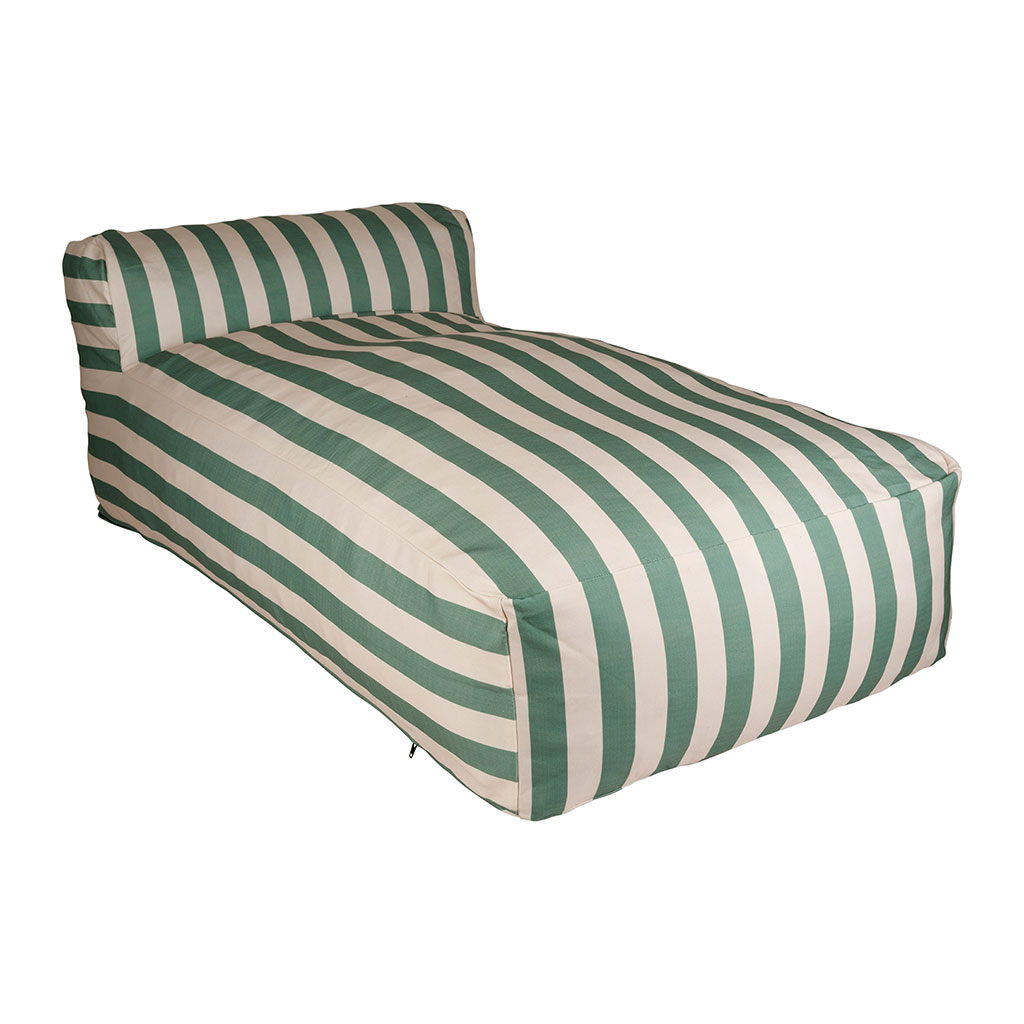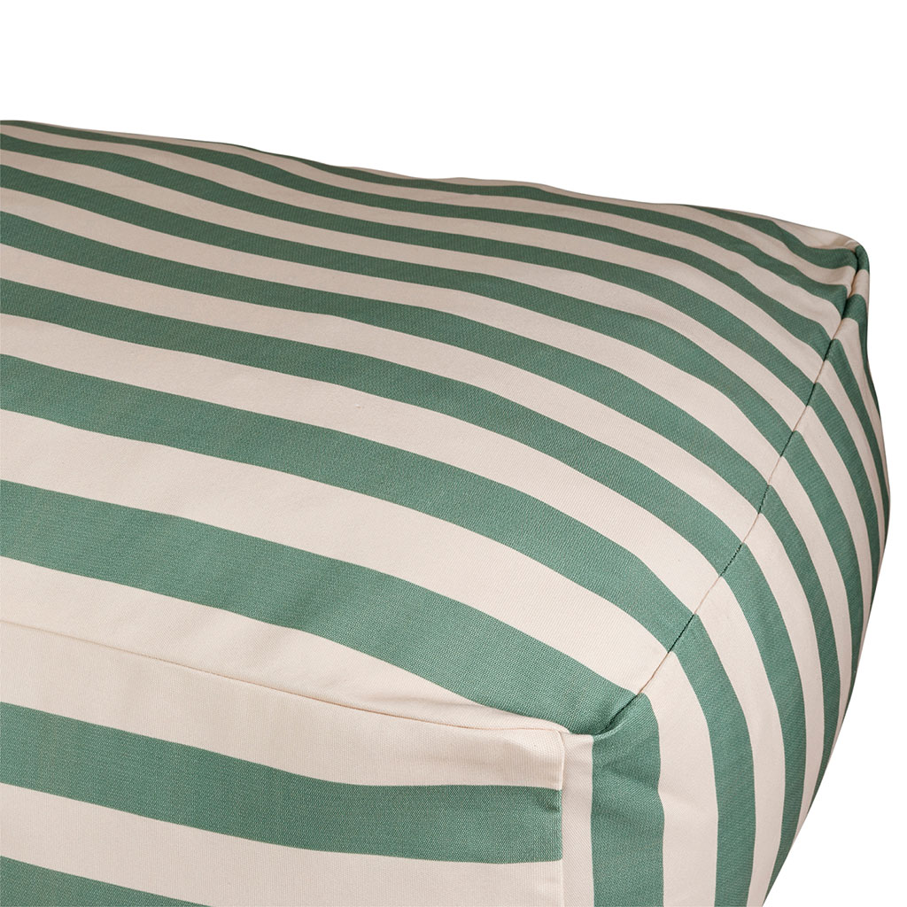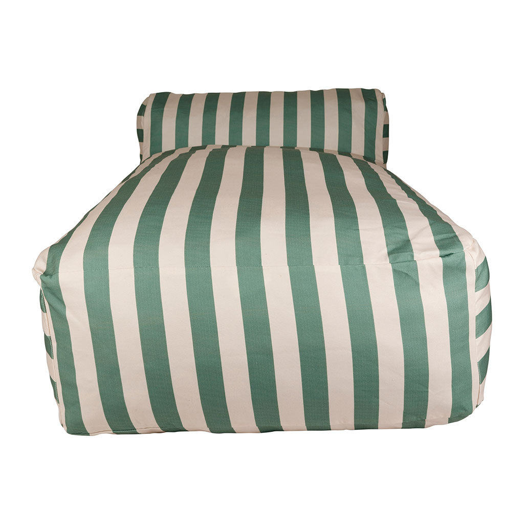 Offrez-vous un véritable coin farniente avec la chaise longue pouf SOLA aux rayures sauge et écru.