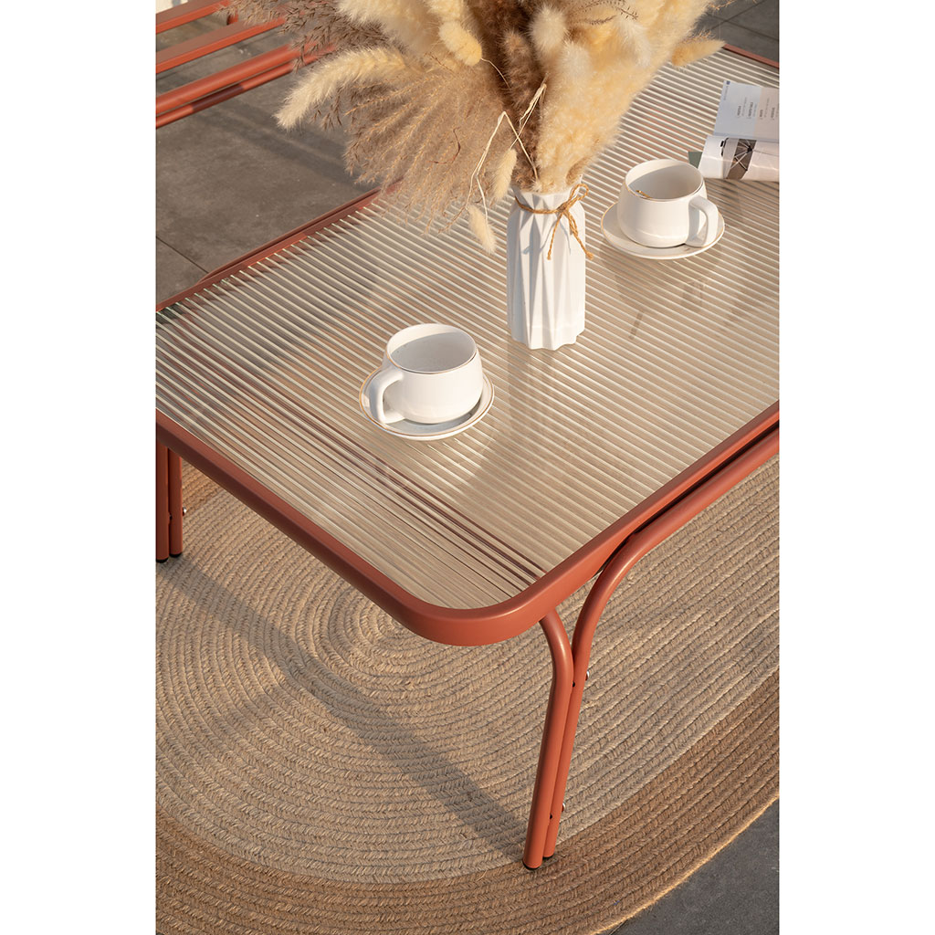 05 56 69 68 67-contact@fabriquedestyles.frSalon de jardin 4 places en acier terracotta - Costa
