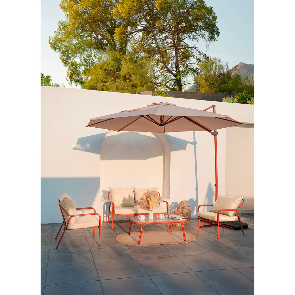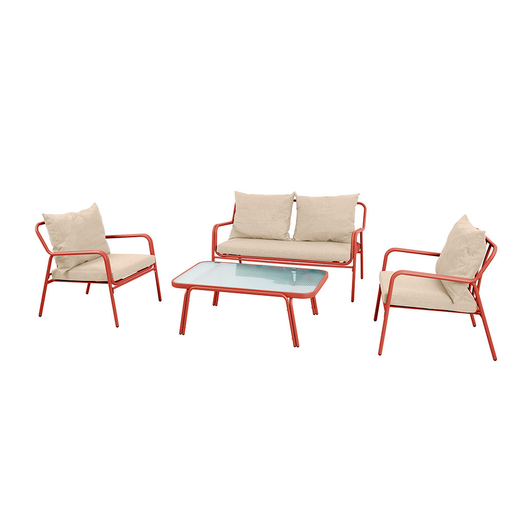 Transformez votre espace extérieur en un véritable havre de paix avec cet ensemble de salon de jardin quatre places en acier couleur terracotta.