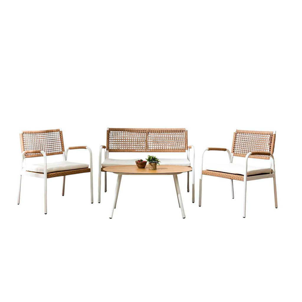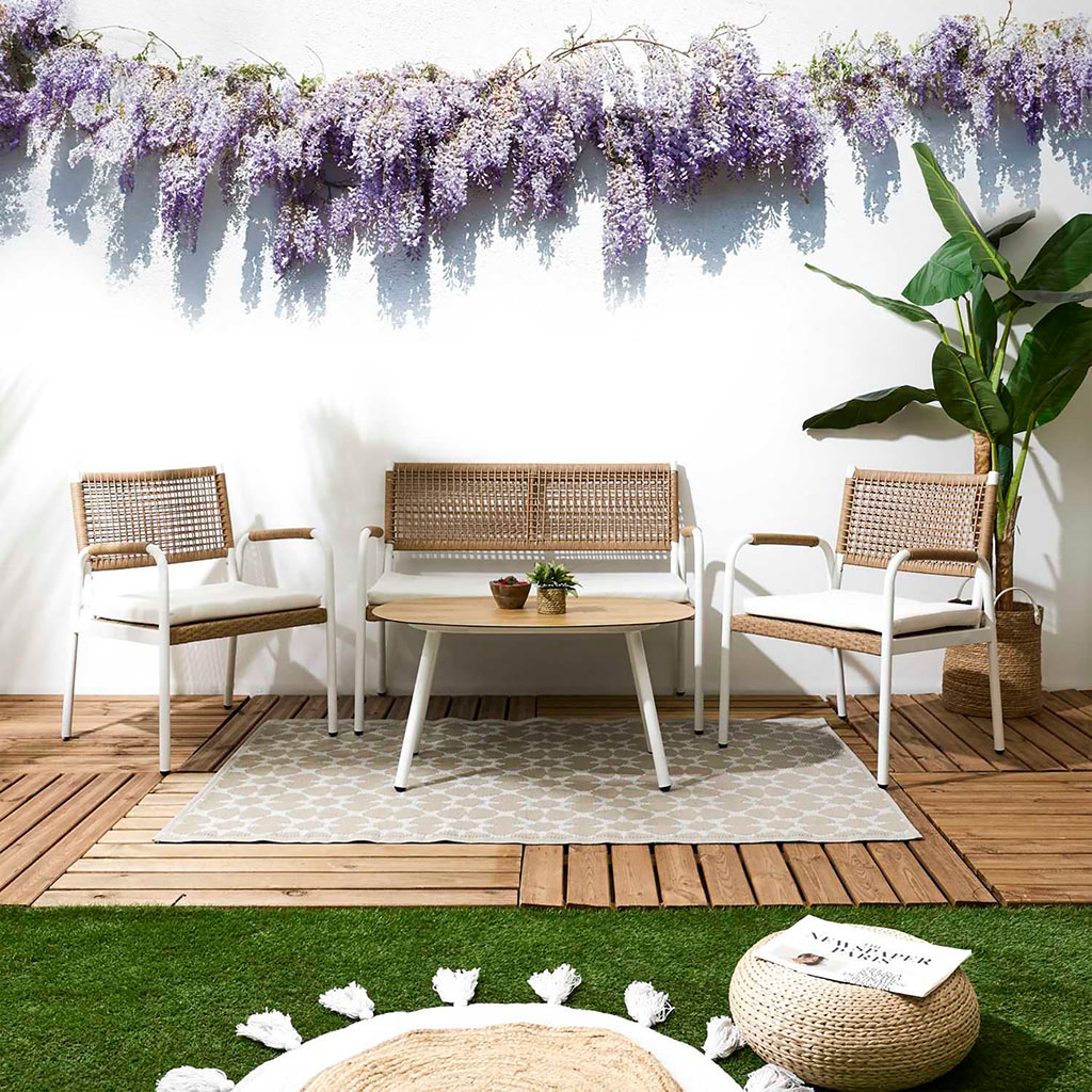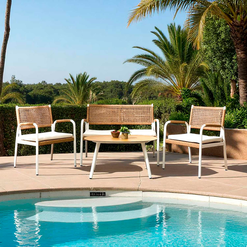 05 56 69 68 67-contact@fabriquedestyles.frSalon de jardin 4 places en métal naturel et blanc - Verone