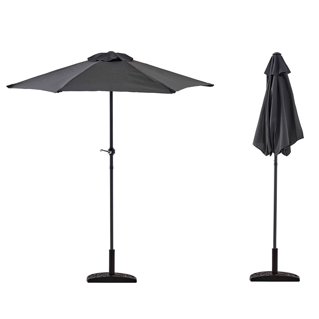 Le parasol central, doté d'une charmante couleur noire, offre l'ombre nécessaire lors des journées ensoleillées.