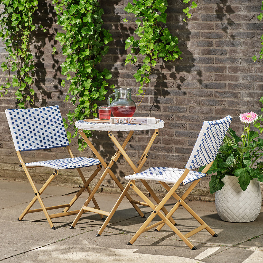 05 56 69 68 67-contact@fabriquedestyles.frEnsemble table et 2 chaises de jardin en résine bleu - Bellano