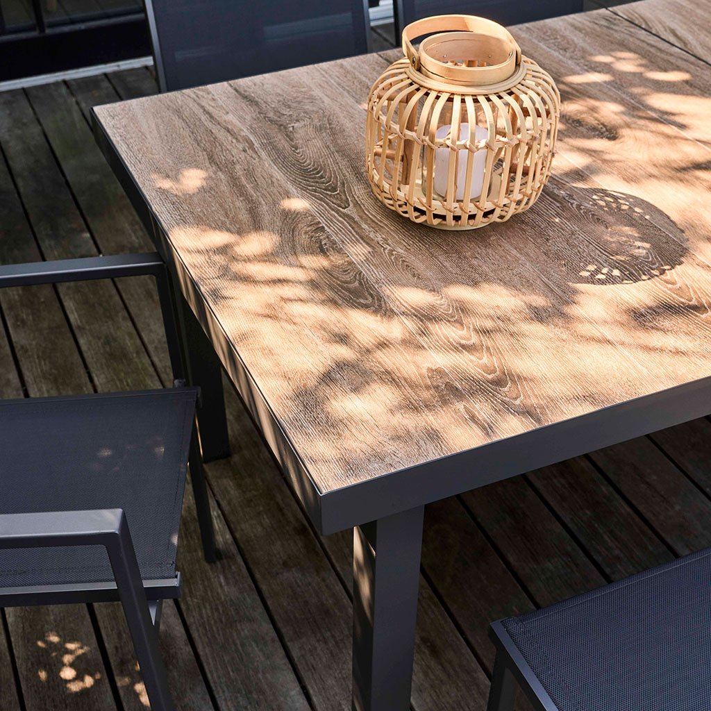 Conjuguant aluminium et céramique avec un fini effet bois, elle apporte une touche chaleureuse et contemporaine à votre terrasse ou jardin.