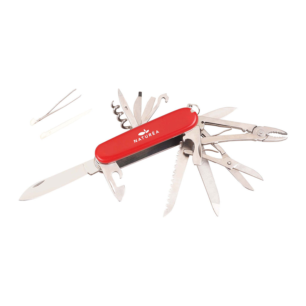 Avec cet outil multifonctionnel en acier inoxydable aux finitions rouges, soyez prêt à affronter n'importe quelle situation.