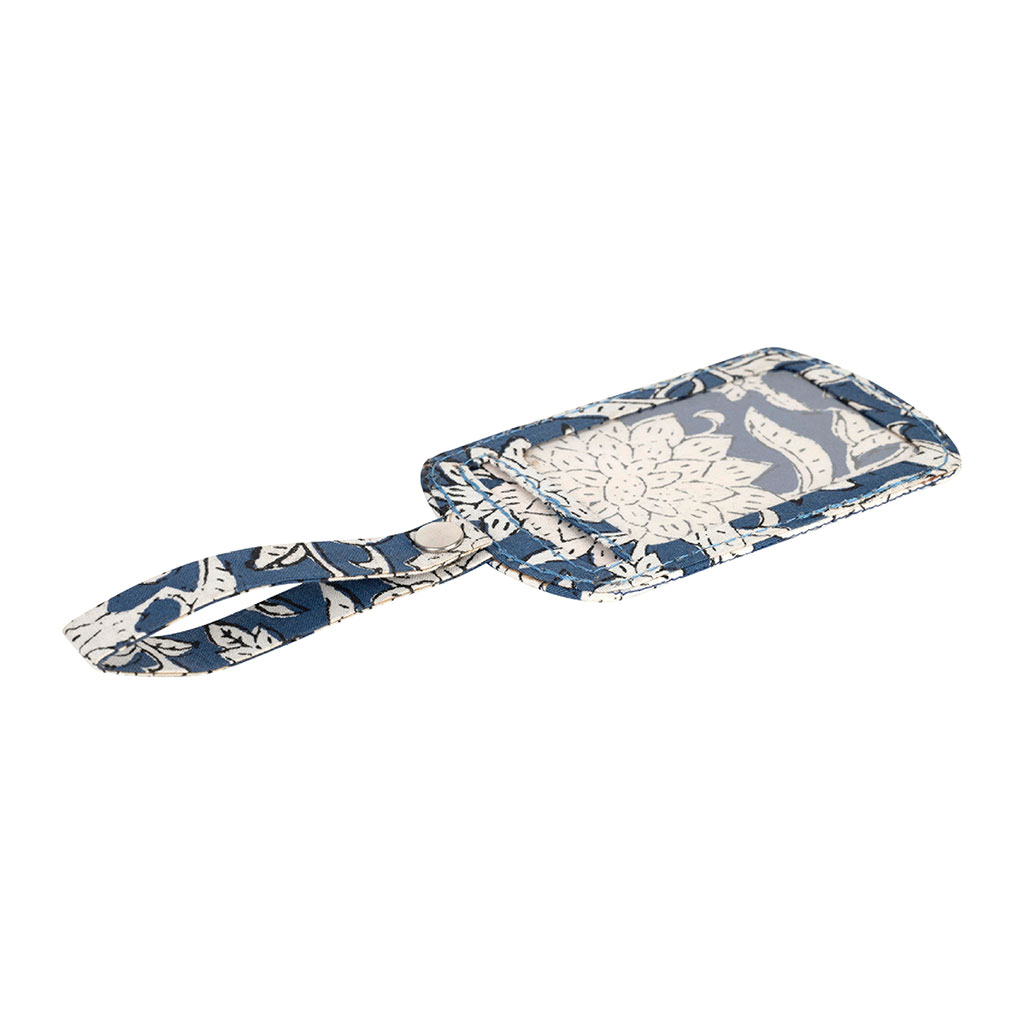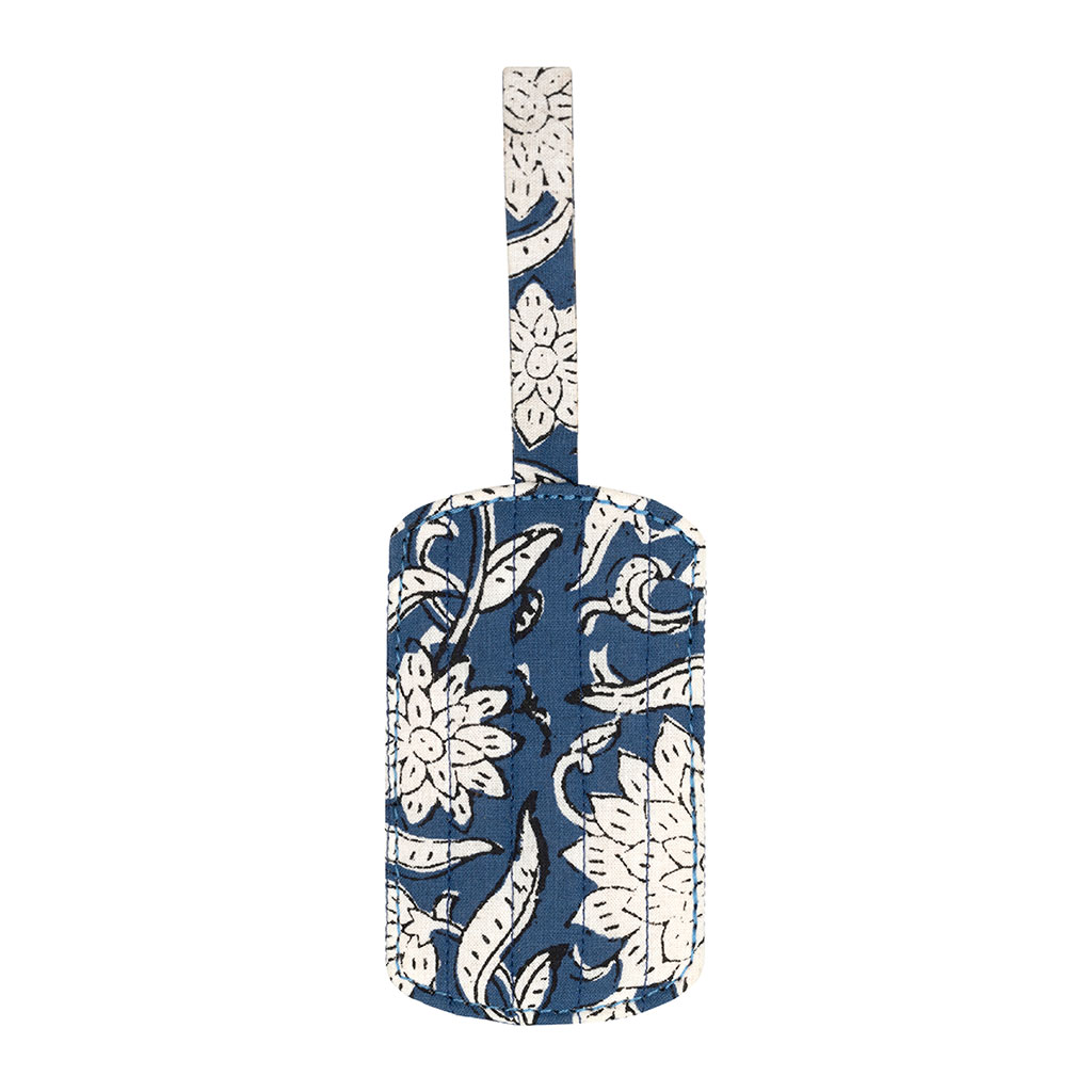 Découvrez notre étiquette bagage en coton bleu, Flaura, l'accessoire parfait pour personnaliser et reconnaître facilement vos valises lors de vos voyages.