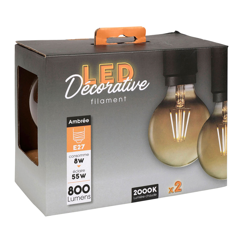 Ce lot de deux ampoules LED globe à filament ambré est la solution idéale pour transformer vos luminaires en véritables objets de décoration.