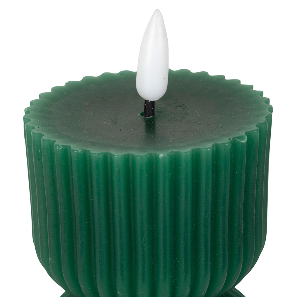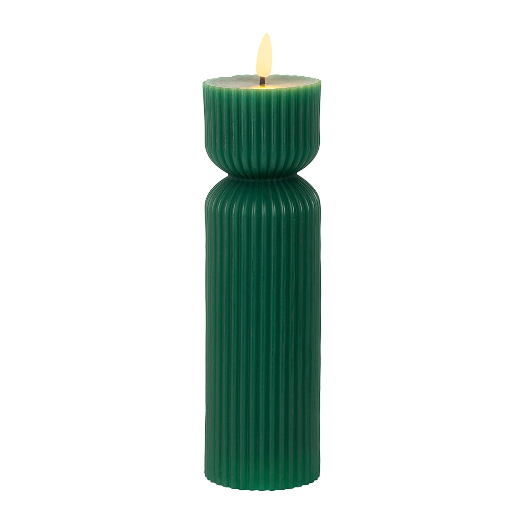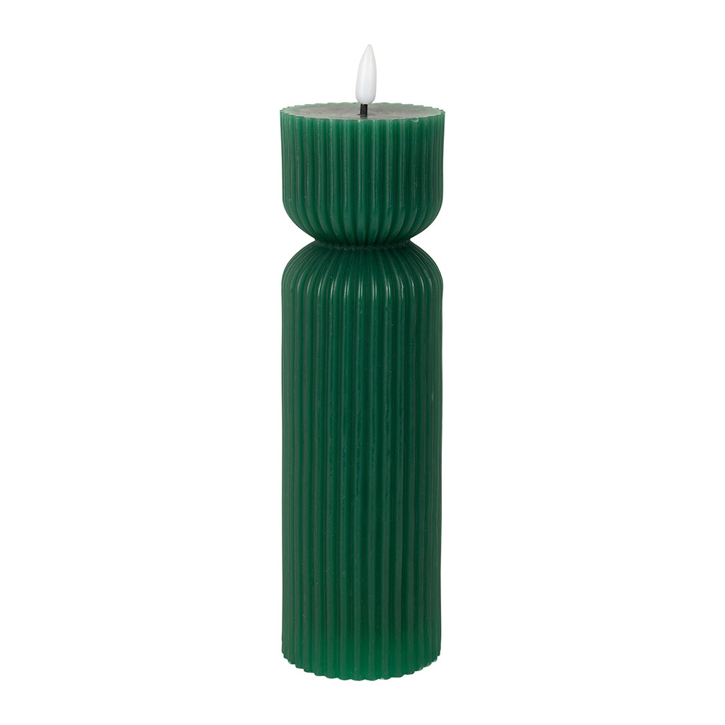 Apportez une ambiance chaleureuse et féerique à votre intérieur avec cette bougie LED pilier de couleur vert sapin.
