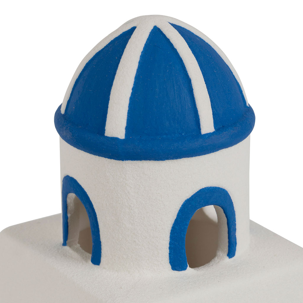 05 56 69 68 67-contact@fabriquedestyles.frDéco led bâtiment grec en porcelaine bleu et blanc - Greeka
