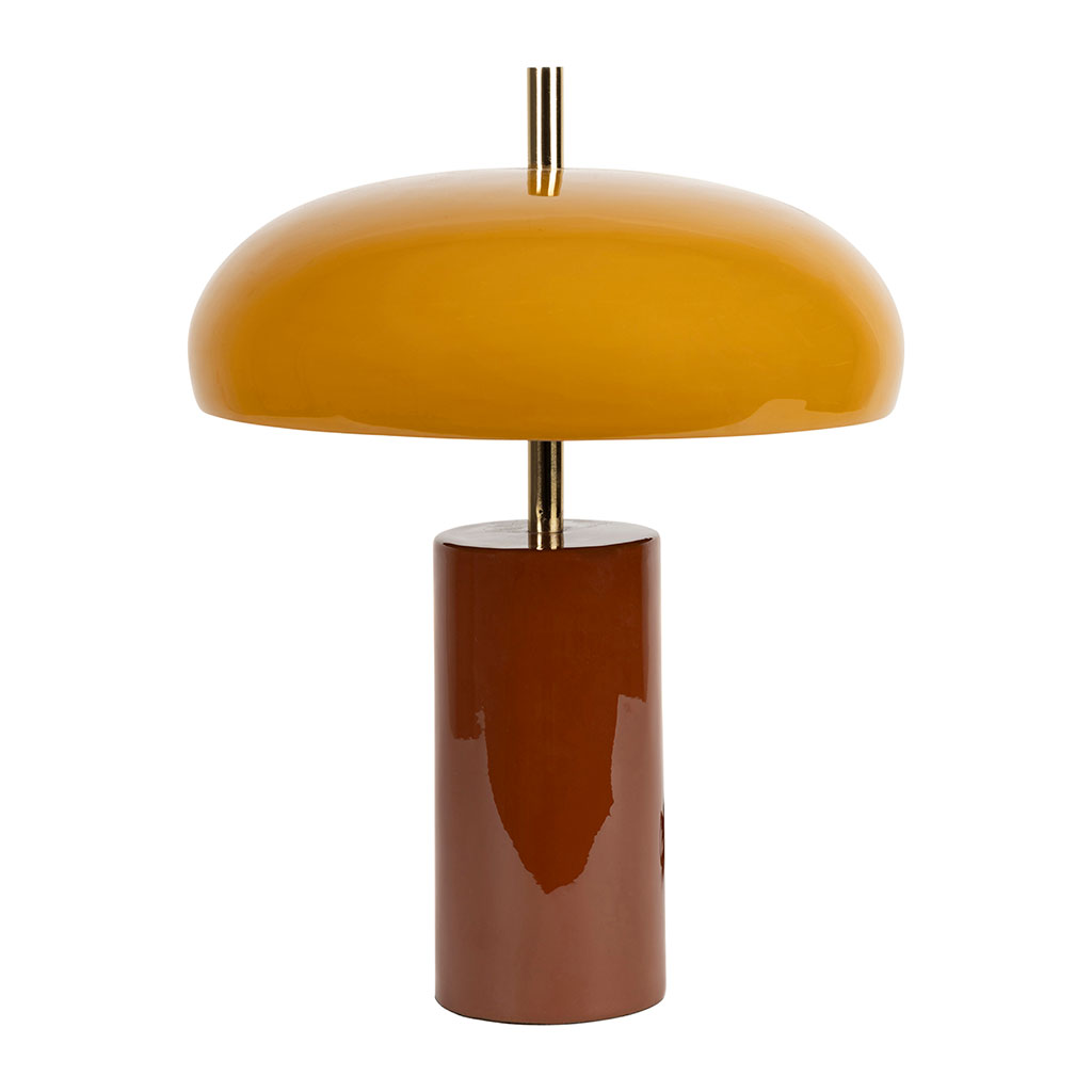 05 56 69 68 67-contact@fabriquedestyles.frLampe champignon en fer brun et moutarde h40cm E14x2 - Arty