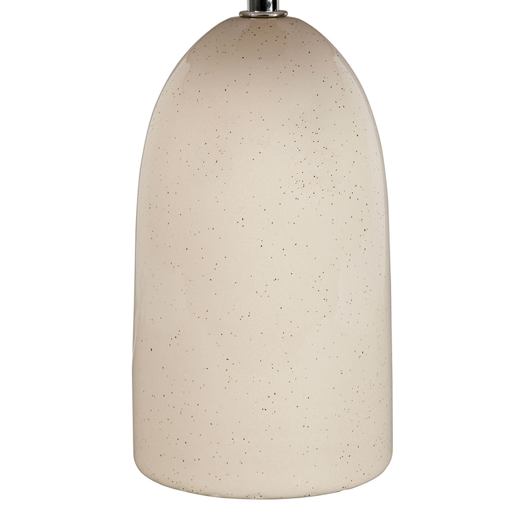 Son pied en céramique claire s'harmonise parfaitement avec l'abat-jour en lin assorti, dont la découpe en vagues apporte une subtile originalité sans alourdir le design.