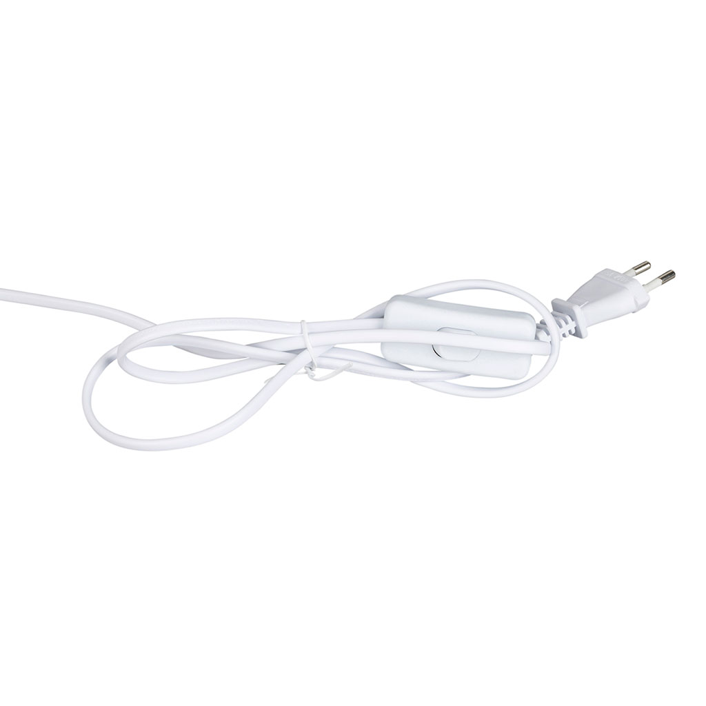 Son abat-jour en lin, orné de fines rayures verticales, diffuse une lumière douce et tamisée, idéale pour créer une atmosphère feutrée.